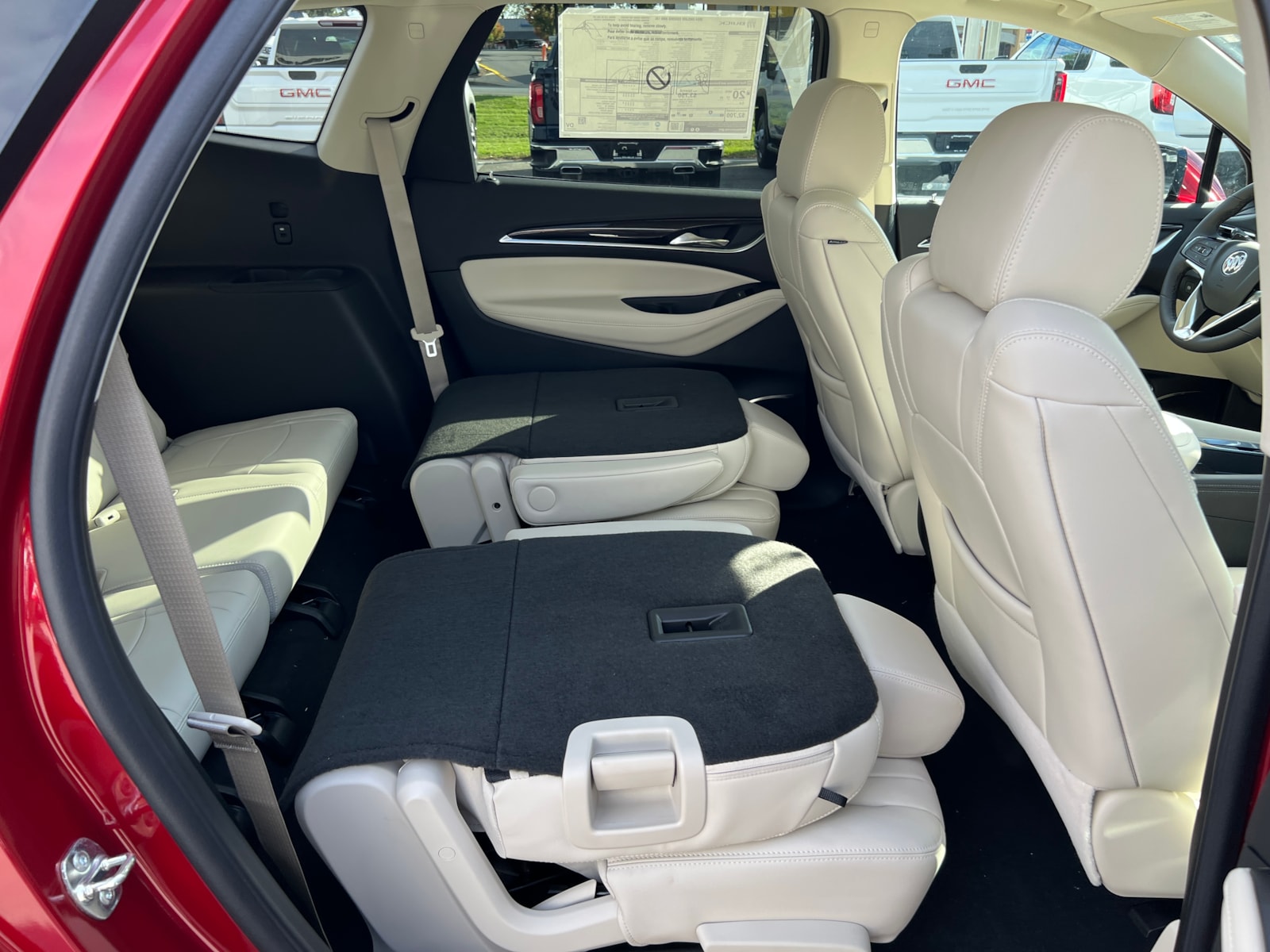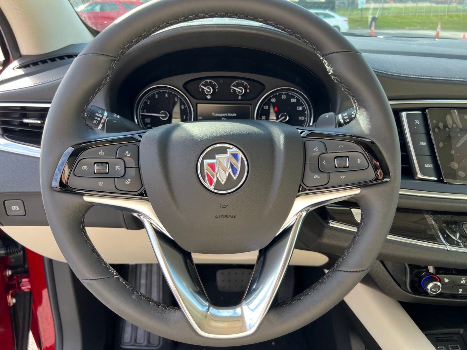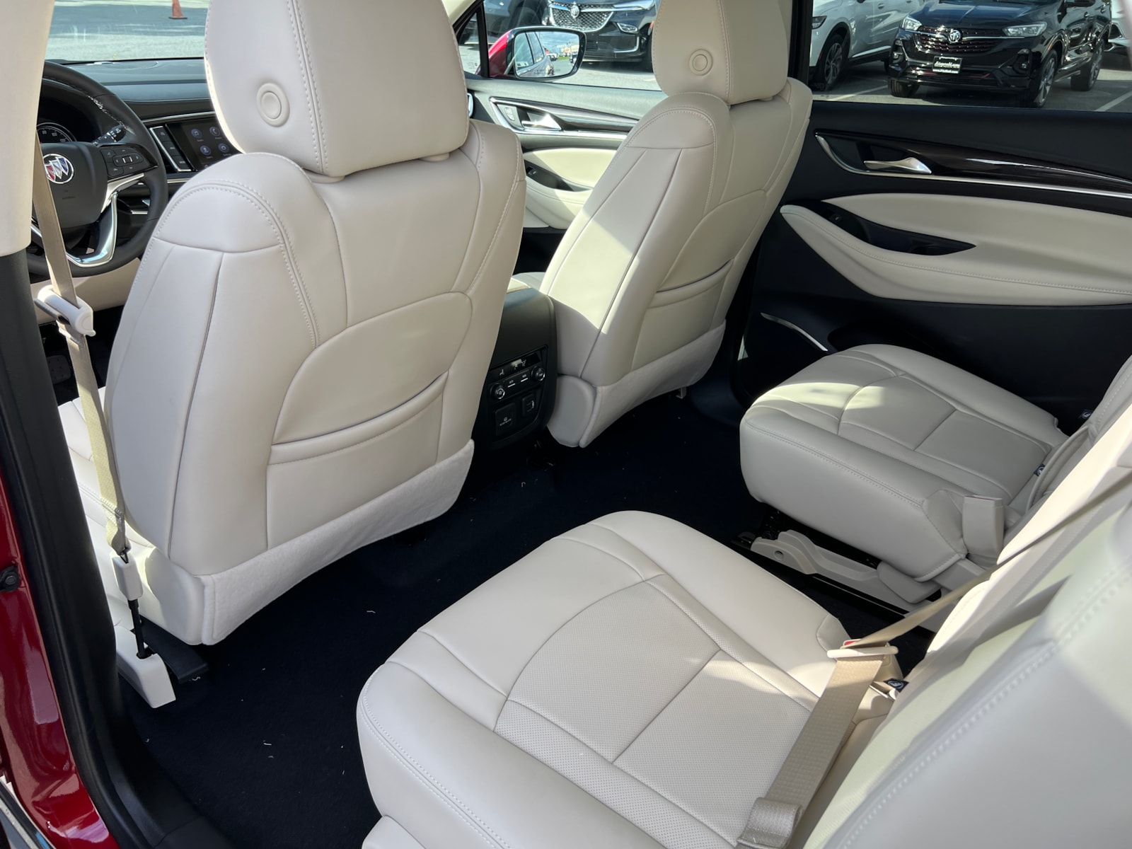 "Cherry Red Tintcoat 2024 Buick Enclave Essence AWD 9-Speed Automatic 3.6L V6 SIDI VVT Enclave Essence, 4D Sport Utility, 3.6L V6 SIDI VVT, 9-Speed Automatic, AWD, Cherry Red Tintcoat, Whisper Beige Seats With Ebony Interior Accents Leather, 120-Volt Power Outlet, 20"" Polished Aluminum Wheels, 3rd row seats: split-bench, 4-Wheel Disc Brakes, 5,000 lbs Trailering Package, 6-Way Power Front Passenger Seat Adjuster, 7-Passenger Seating, 8-Way Power Driver Seat Adjuster, ABS brakes, Air Conditioning, Auto High-beam Headlights, Auto-dimming door mirrors, Auto-dimming Rear-View mirror, Automatic temperature control, Bose Performance-Enhanced 10-Speaker System, Brake assist, Bumpers: body-color, Compass, Delay-off headlights, Dual front impact airbags, Dual front side impact airbags, Electronic Stability Control, Emergency communication system: OnStar and Buick connected services capable, Experience Buick Package, Four wheel independent suspension, Front anti-roll bar, Front Bucket Seats, Front dual zone A/C, Front Power Sliding Moonroof, Fully automatic headlights, Garage door transmitter, Heated door mirrors, Heated Driver & Front Passenger Seats, Heated front seats, Heated steering wheel, Heavy-Duty Cooling System, Hitch Guidance, Hitch Guidance w/Hitch View, Illuminated entry, Leather steering wheel, Low tire pressure warning, Occupant sensing airbag, Outside temperature display, Overhead airbag, Overhead console, Panic alarm, Perforated Leather-Appointed Seat Trim, Power door mirrors, Power Driver Lumbar Control Seat Adjuster, Power Liftgate, Power Passenger Lumbar Control Seat Adjuster, Preferred Equipment Group 1SL, Radio: Buick Infotainment Sys AM/FM Stereo w/Nav, Rear air conditioning, Rear anti-roll bar, Rear window defroster, Rear window wiper, Remote keyless entry, Security system, SiriusXM w/360L, Sound & Sites Package, Speed control, Speed-sensing steering, Spoiler, Steering wheel mounted audio controls, Tachometer, Telescoping steering wheel, Tilt steering wheel, Traction control, Trip computer, Turn signal indicator mirrors, Variably intermittent wipers, Vehicle Health Management, Voltmeter, Wireless Apple CarPlay/Wireless Android Auto. Price includes: $1250 - Purchase Allowance. Exp. 06/03/2024 $500 - Bonus Cash. Exp. 06/03/2024 "