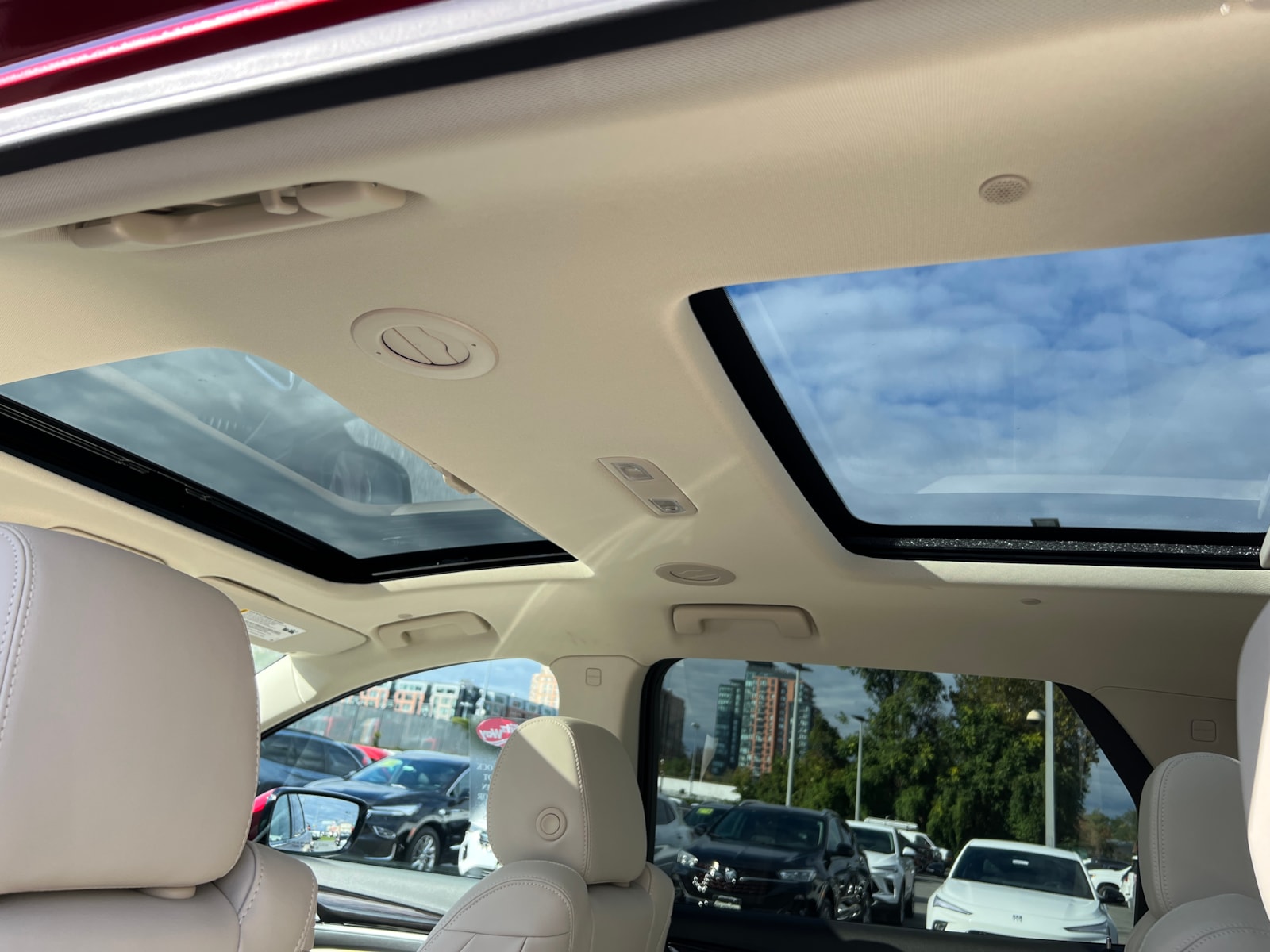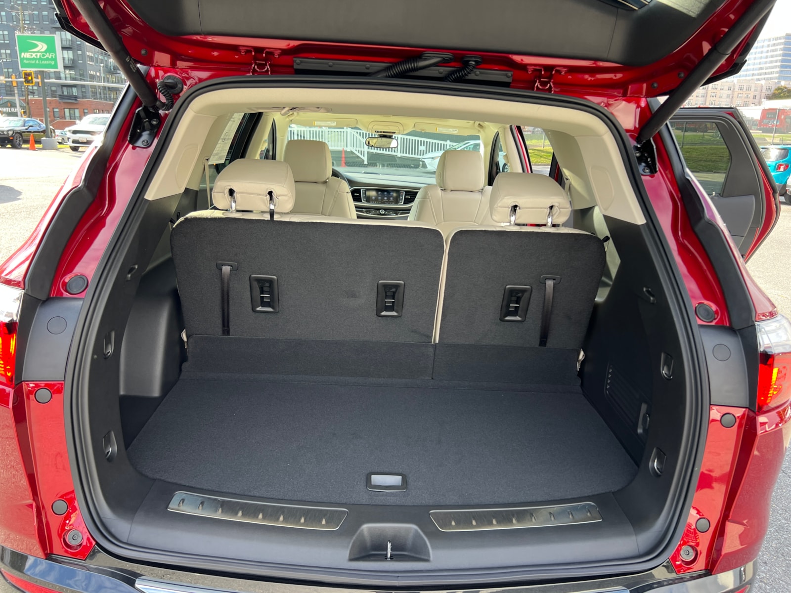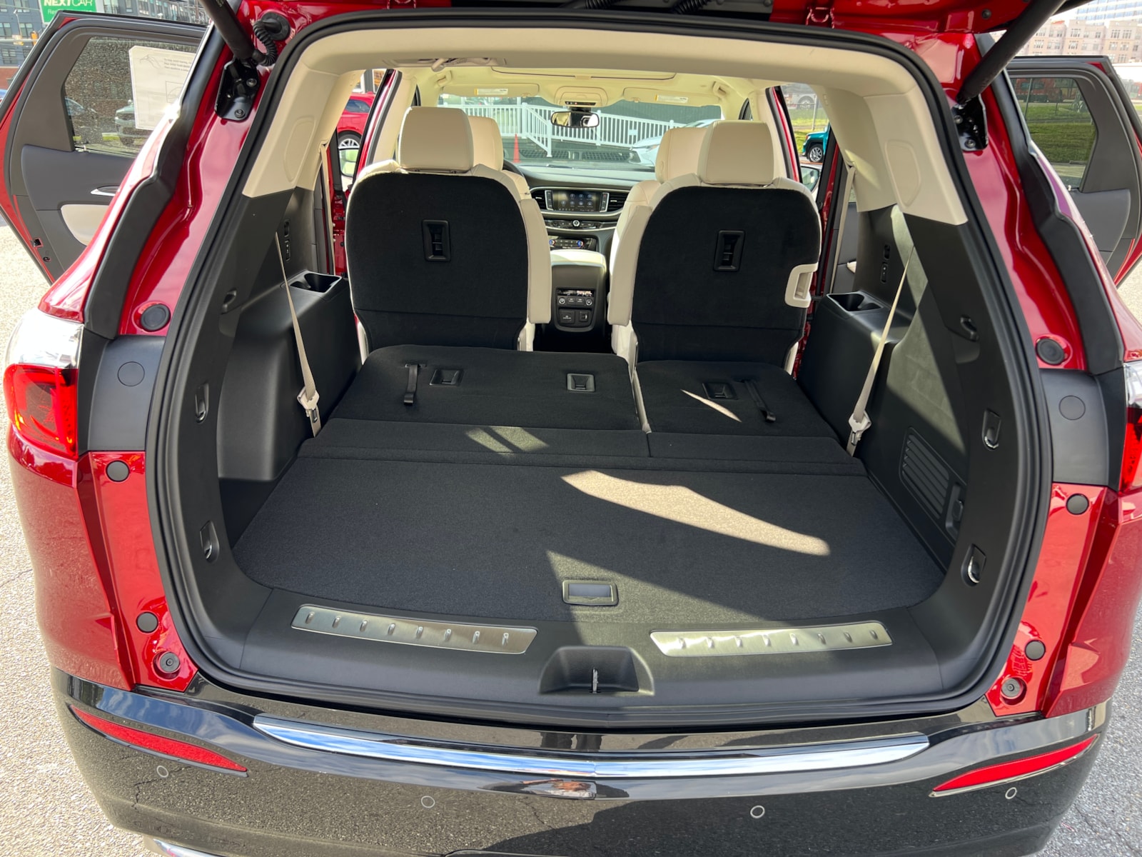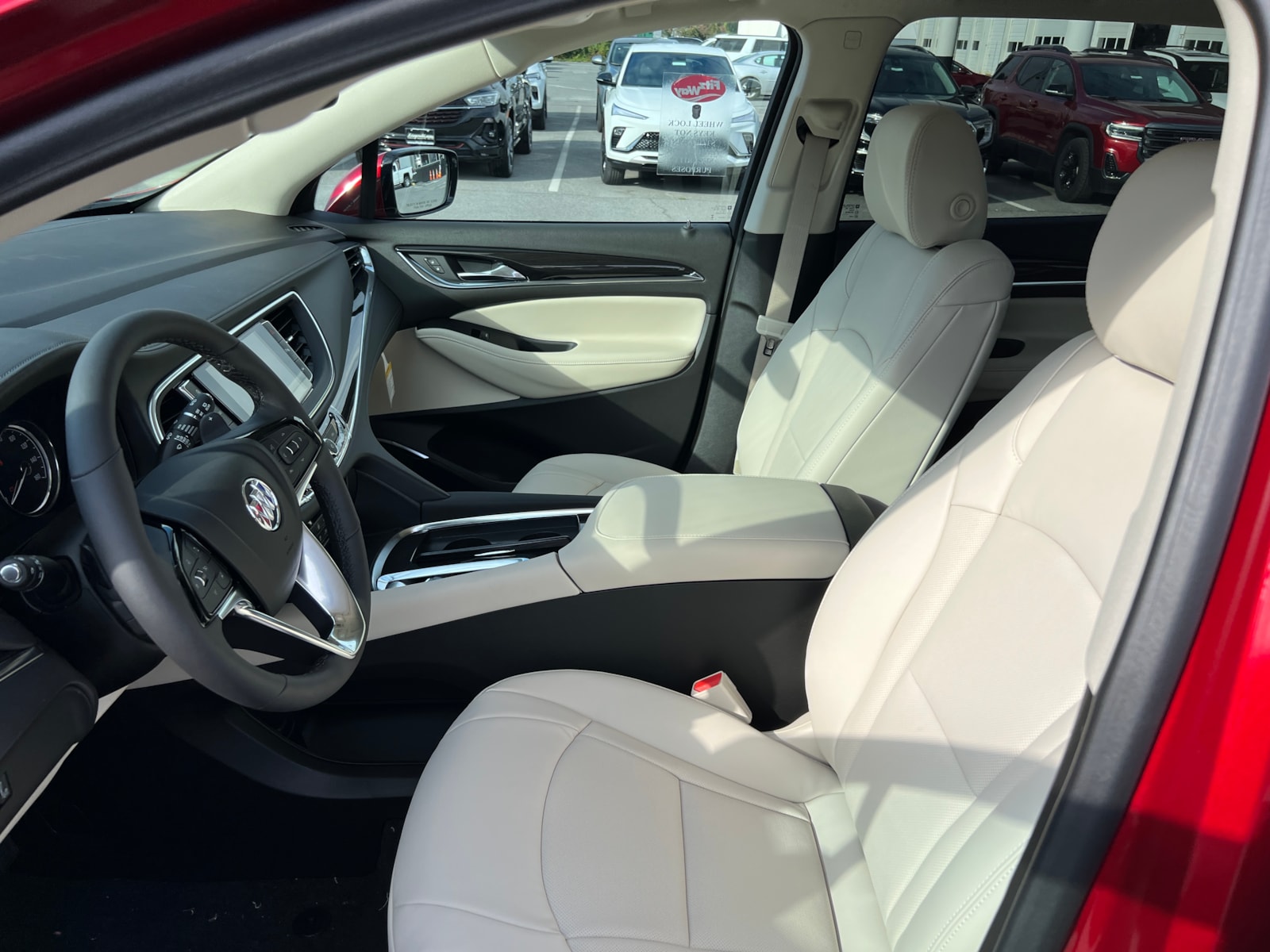 "Cherry Red Tintcoat 2024 Buick Enclave Essence AWD 9-Speed Automatic 3.6L V6 SIDI VVT Enclave Essence, 4D Sport Utility, 3.6L V6 SIDI VVT, 9-Speed Automatic, AWD, Cherry Red Tintcoat, Whisper Beige Seats With Ebony Interior Accents Leather, 120-Volt Power Outlet, 20"" Polished Aluminum Wheels, 3rd row seats: split-bench, 4-Wheel Disc Brakes, 5,000 lbs Trailering Package, 6-Way Power Front Passenger Seat Adjuster, 7-Passenger Seating, 8-Way Power Driver Seat Adjuster, ABS brakes, Air Conditioning, Auto High-beam Headlights, Auto-dimming door mirrors, Auto-dimming Rear-View mirror, Automatic temperature control, Bose Performance-Enhanced 10-Speaker System, Brake assist, Bumpers: body-color, Compass, Delay-off headlights, Dual front impact airbags, Dual front side impact airbags, Electronic Stability Control, Emergency communication system: OnStar and Buick connected services capable, Experience Buick Package, Four wheel independent suspension, Front anti-roll bar, Front Bucket Seats, Front dual zone A/C, Front Power Sliding Moonroof, Fully automatic headlights, Garage door transmitter, Heated door mirrors, Heated Driver & Front Passenger Seats, Heated front seats, Heated steering wheel, Heavy-Duty Cooling System, Hitch Guidance, Hitch Guidance w/Hitch View, Illuminated entry, Leather steering wheel, Low tire pressure warning, Occupant sensing airbag, Outside temperature display, Overhead airbag, Overhead console, Panic alarm, Perforated Leather-Appointed Seat Trim, Power door mirrors, Power Driver Lumbar Control Seat Adjuster, Power Liftgate, Power Passenger Lumbar Control Seat Adjuster, Preferred Equipment Group 1SL, Radio: Buick Infotainment Sys AM/FM Stereo w/Nav, Rear air conditioning, Rear anti-roll bar, Rear window defroster, Rear window wiper, Remote keyless entry, Security system, SiriusXM w/360L, Sound & Sites Package, Speed control, Speed-sensing steering, Spoiler, Steering wheel mounted audio controls, Tachometer, Telescoping steering wheel, Tilt steering wheel, Traction control, Trip computer, Turn signal indicator mirrors, Variably intermittent wipers, Vehicle Health Management, Voltmeter, Wireless Apple CarPlay/Wireless Android Auto. Price includes: $1250 - Purchase Allowance. Exp. 06/03/2024 $500 - Bonus Cash. Exp. 06/03/2024 "