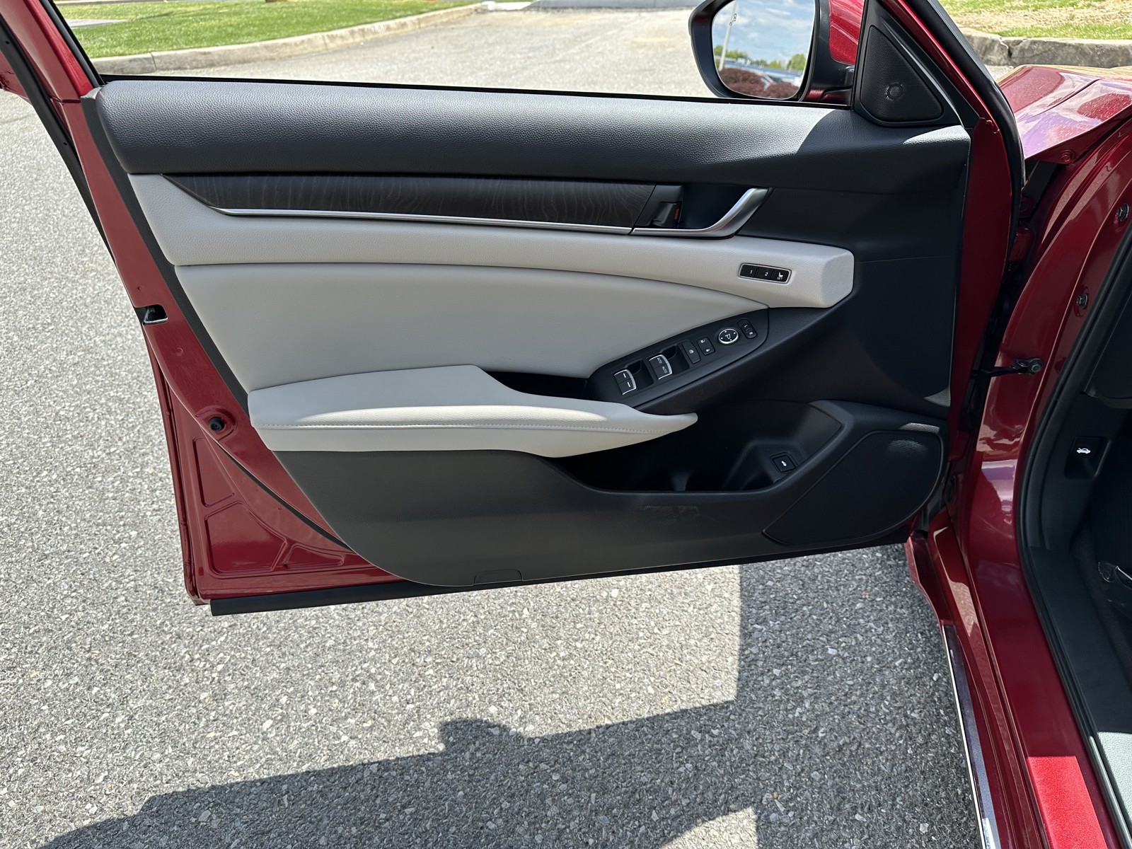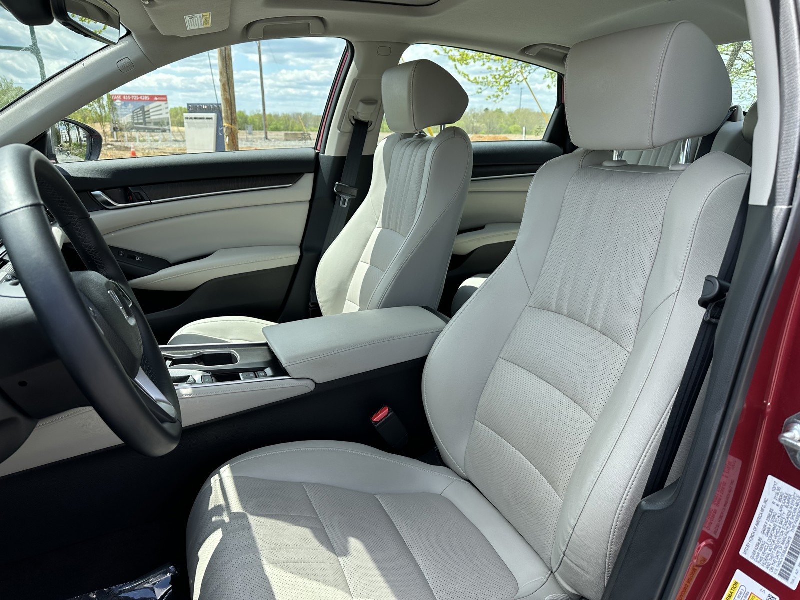 "New Price! Radiant Red Metallic 2018 Honda Accord EX-L FWD CVT 1.5T I4 DOHC 16V Turbocharged VTEC One Owner, No accidents or damage reported to CARFAX, 4D Sedan, CVT, Ivory w/Leather-Trimmed Seats, 10 Speakers, 17"" Machine-Finished Alloy Wheels, ABS brakes, Air Conditioning, AM/FM radio: SiriusXM, Dual front impact airbags, Dual front side impact airbags, Electronic Stability Control, Exterior Parking Camera Rear, Front Bucket Seats, Front dual zone A/C, Front reading lights, Heated front seats, Illuminated entry, Leather Shift Knob, Leather steering wheel, Leather-Trimmed Seats, Memory seat, Power driver seat, Power moonroof, Power passenger seat, Power steering, Power windows, Remote keyless entry, Steering wheel mounted audio controls, Tilt steering wheel, Traction control, Trip computer.Recent Arrival! Odometer is 63067 miles below market average! 30/38 City/Highway MPGAwards: * JD Power Automotive Performance, Execution and Layout (APEAL) Study * ALG Residual Value Awards, Residual Value Awards * NACTOY 2018 North American Car of the Year * 2018 KBB.com 10 Most Awarded Brands * 2018 KBB.com Brand Image AwardsKelley Blue Book Brand Image Awards are based on the Brand Watch(tm) study from Kelley Blue Book Market Intelligence. Award calculated among non-luxury shoppers. For more information, visit www.kbb.com. Kelley Blue Book is a registered trademark of Kelley Blue Book Co., Inc.CALL US (301) 770-3300 or Visit us in 5501 Nicholson Lane, Rockville, MD 20852 Hablamos Espanol."